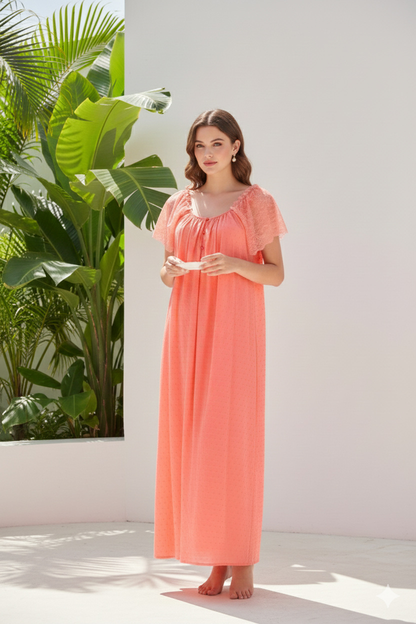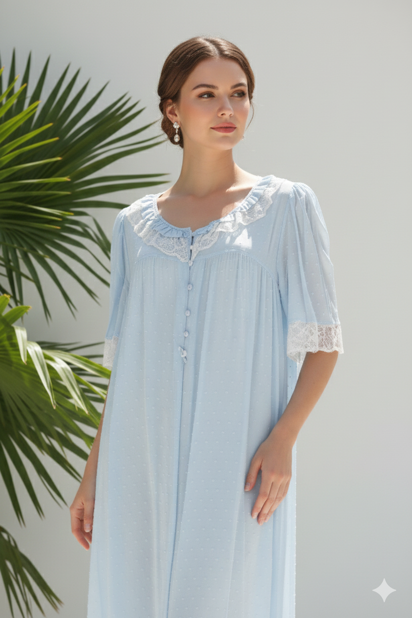 قميص نوم مطرّز قطن بنقشة منقطة #1127