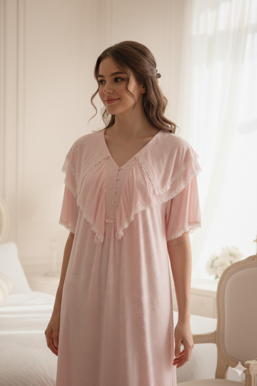 قميص نوم طويل بتصميم ملكي وكشكش فاخر #1128