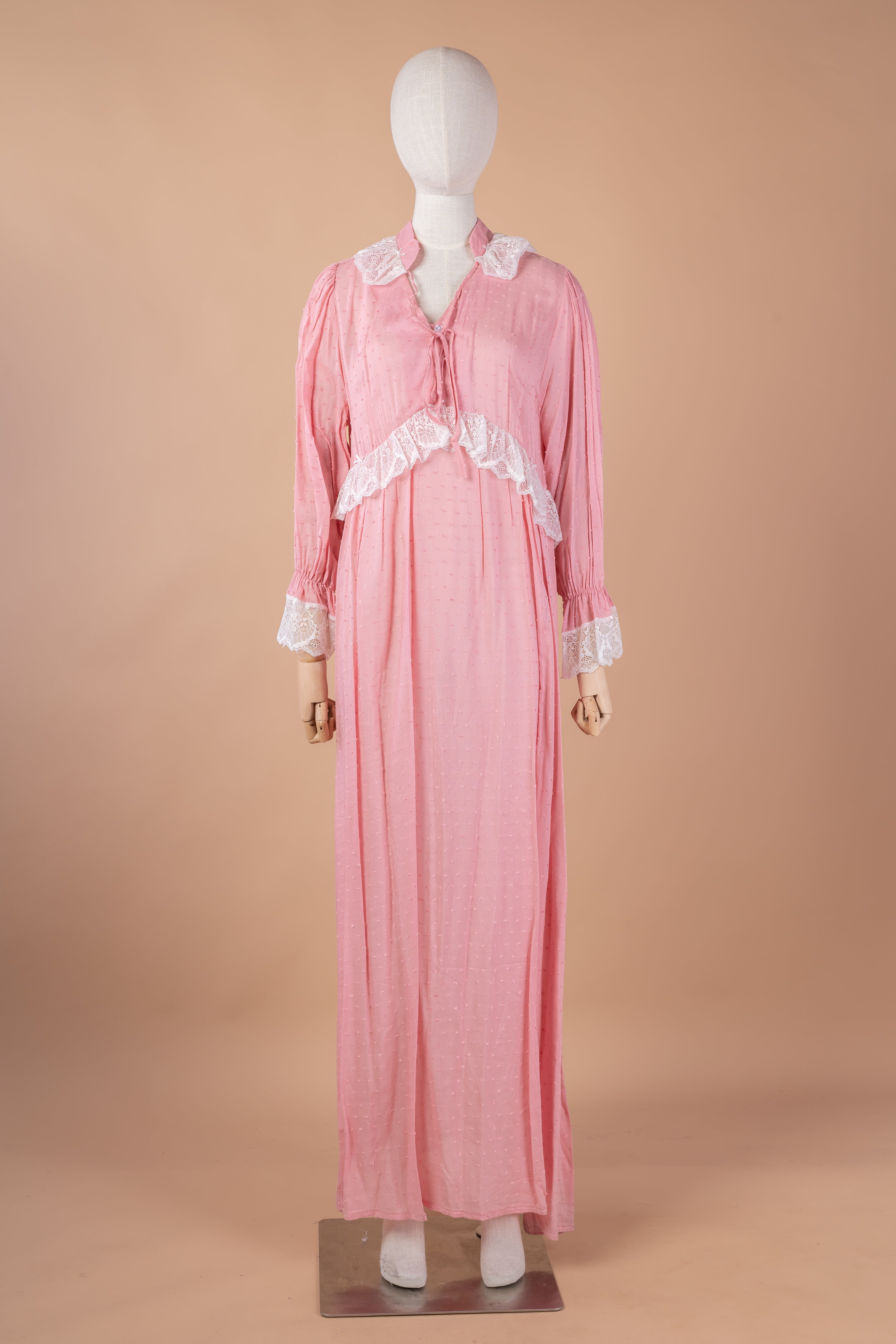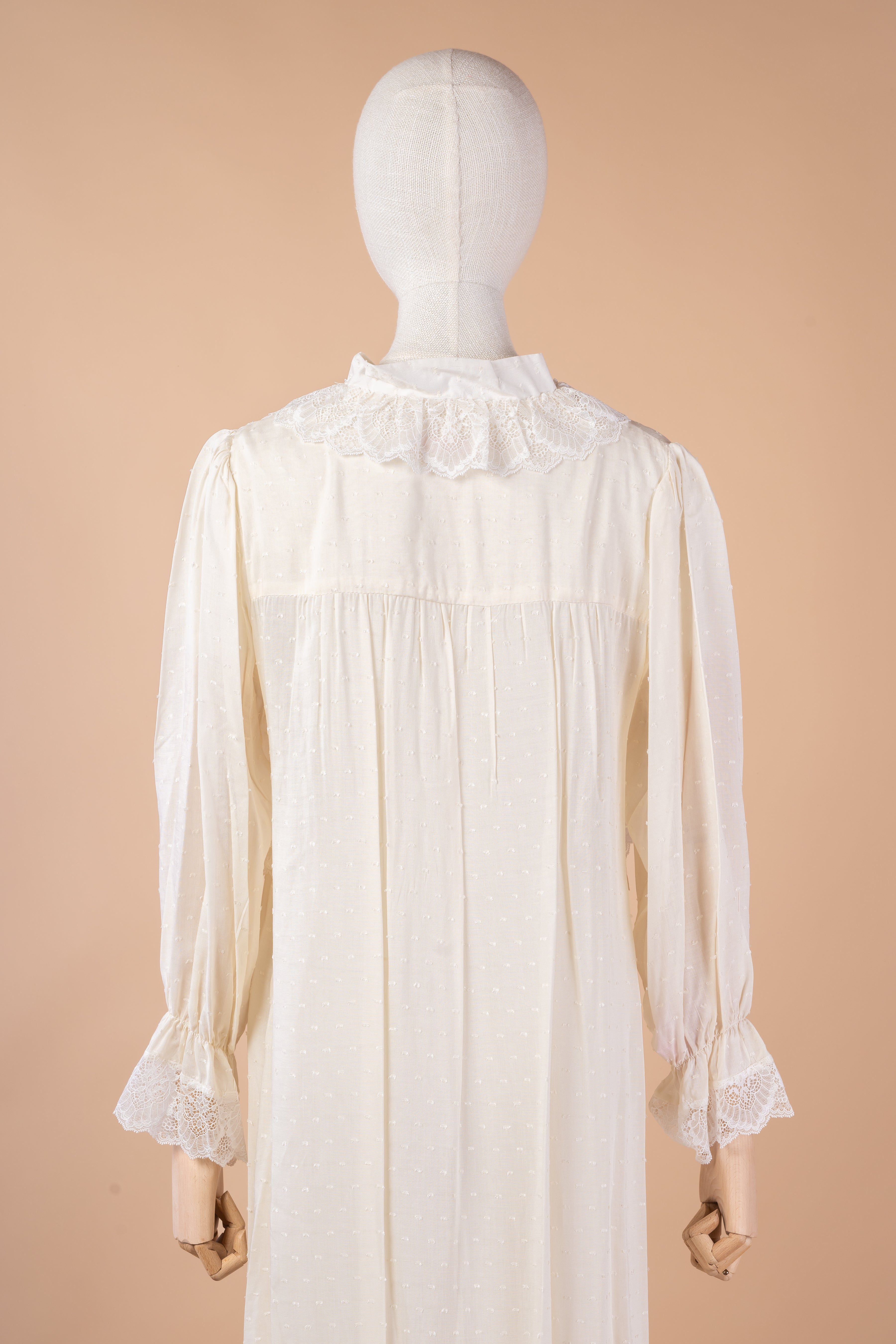 ابدئي يومكِ بإحساس ناعم مع هذا القميص المصنوع من قطن منقط خفيف ينساب برقة على بشرتكِ. تصميمه الطويل والأكمام المريحة يجمعان بين الأناقة والبساطة، بينما تضيف لمسات الدانتيل على الأكمام وأسفل الصدر لمسة راقية تعزز أنوثتكِ. مثالي كقميص نوم فاخر بإطلالة خاصة