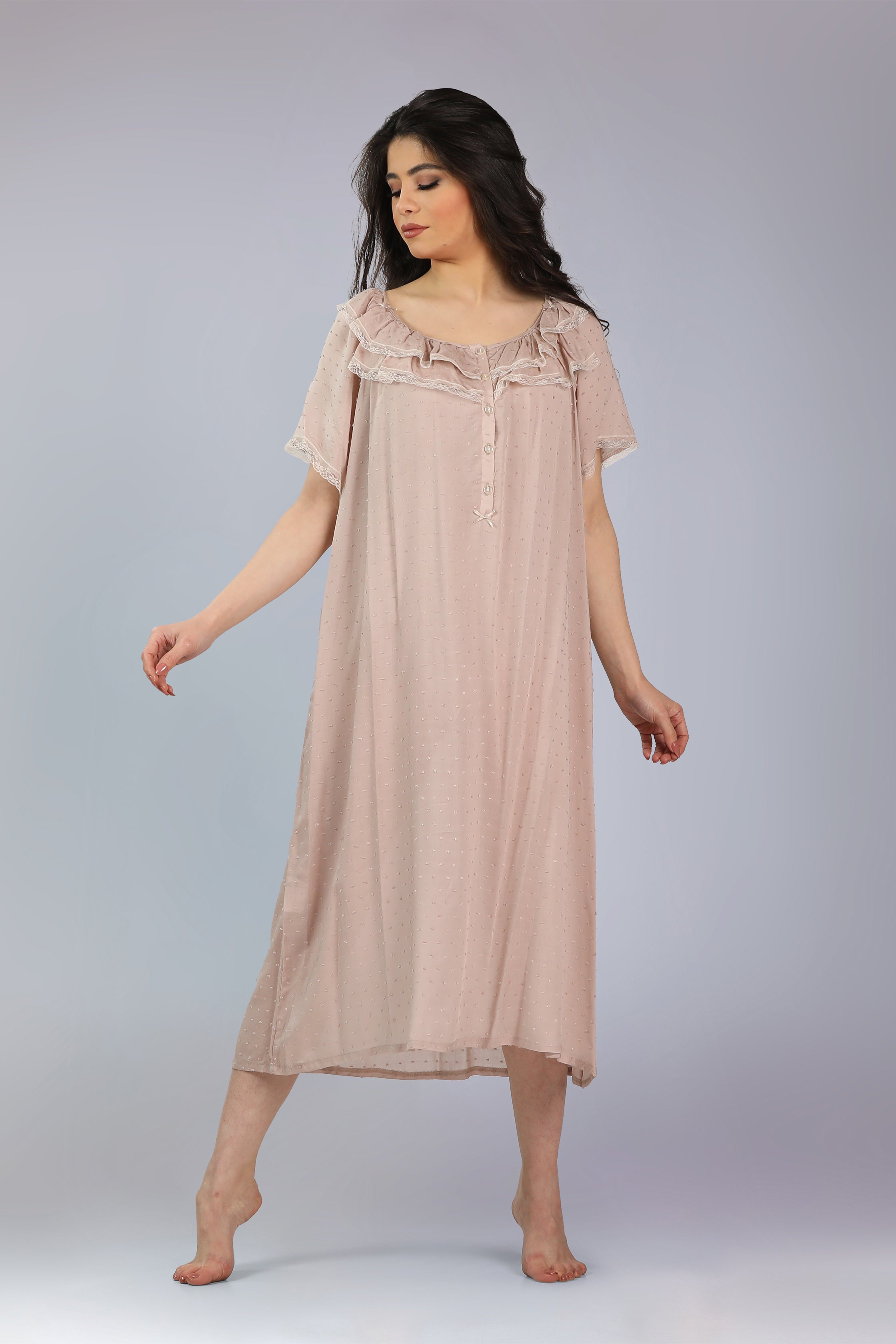 مزين بكشكش دانتيل ناعم على الصدر والأكمام